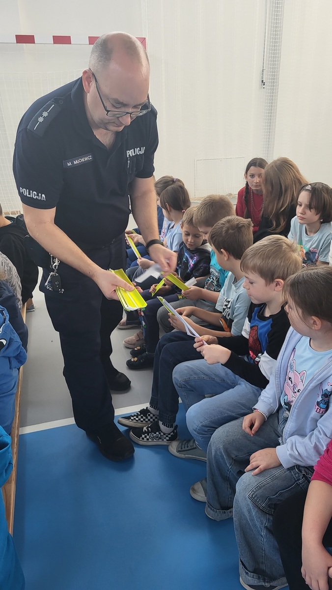 Dzielnicowi z golubsko-dobrzyńskiej komendy wraz z profilaktykiem, w miniony piątek (03.10.2025), w ramach działań " Świeć Przykładem - Noś odblaski" odwiedzili uczniów szkół podstawowych z terenu gminy Ciechocin. Mundurowi przypomniali dzieciom, aby korzystali z elementów odblaskowych, o zasadach poruszania się po drogach oraz o bezpiecznym poruszaniu się w miejscach nieoświetlonych. Uczniowie chętnie włączyli się w dyskusje o przepisach, które trzeba przestrzegać aby być niezagrożonym na drodze. Policjanci omówili także ogóne przepisy dotyczące warunków technicznych, jakie musi spełniać rower i hulajnoga.