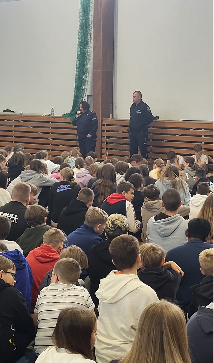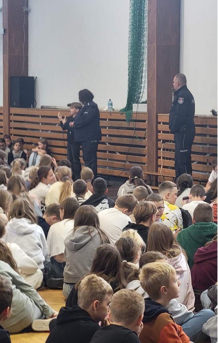 Mundurowi przypomnieli również, jak ważne jest prawidłowe reagowanie na przemoc wobec dzieci. Wytłumaczyli uczniom, co można zrobić, kiedy doświadcza się zachowań przemocowych oraz zapoznali z bezpłatnym numerem Telefonu Zaufania dla dzieci i Młodzieży 116 111.