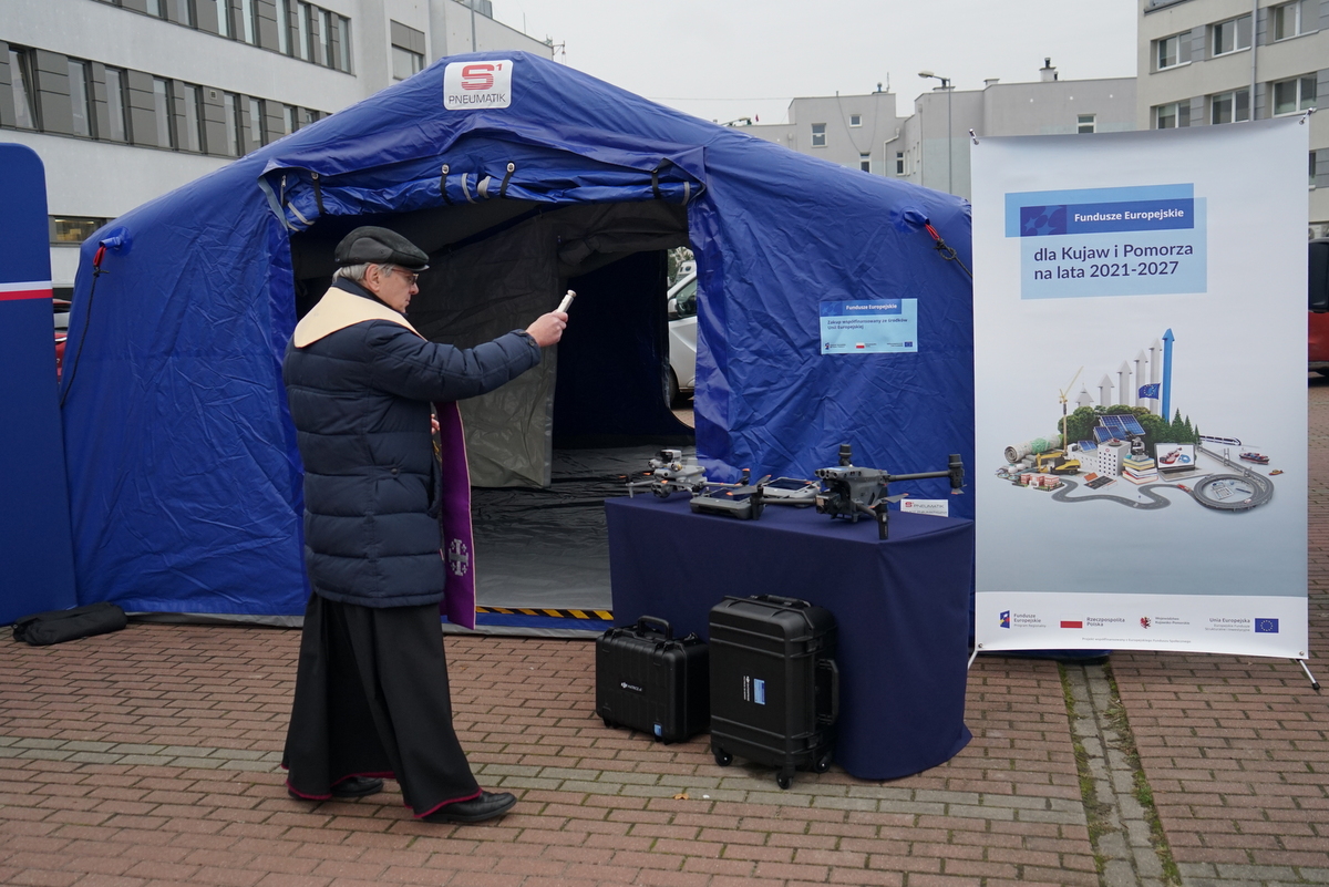 • Nowe =bezzałogowe statki powietrzne, nowe pojazdy służbowe Mercedes-Benz Sprinter, namiot ratowniczy