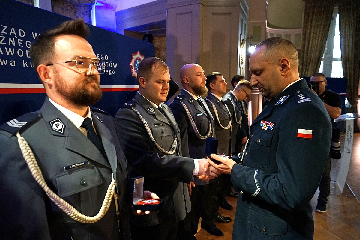 W środę (26.11.25r.) w Bydgoszczy, Komendant Wojewódzki Policji w Bydgoszczy insp. Jakub Gorczyński wraz z Przewodniczącym Zarządu Wojewódzkiego NSZZ Policjantów woj. kujawsko-pomorskiego mł. insp. Piotrem Kujawą wręczyli "Kryształowe Serce" wyróżnionym policjantom. Wśród 80 wyróżnionych, jeden to funkcjonariusz z Komendy Powiatowej Policji w Golubiu-Dobrzyniu :