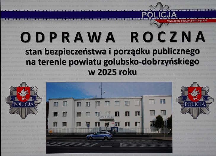 Komendant Powiatowy Policji w Golubiu-Dobrzyniu inspektor Maciej Zdunowski przeprowadził odprawę roczną podsumowującą pracę policjantów naszej jednostki za rok 2025. W spotkaniu uczestniczył Zastępca Komendanta Wojewódzkiego Policji w Bydgoszczy inspektor Jacek Witas.