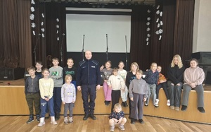 W ramach trwających ferii zimowych dzieci uczestniczące w półkoloniach organizowanych przez Miejsko-Gminny Ośrodek Kultury w Kowalewie Pomorskim miały okazję spotkać się z dzielnicowym mł. asp. Mateuszem Gieszkiewiczem. Mundurowy omówił zasady bezpieczeństwa podczas zabaw na śniegu i lodzie a także w ruchu drogowym.